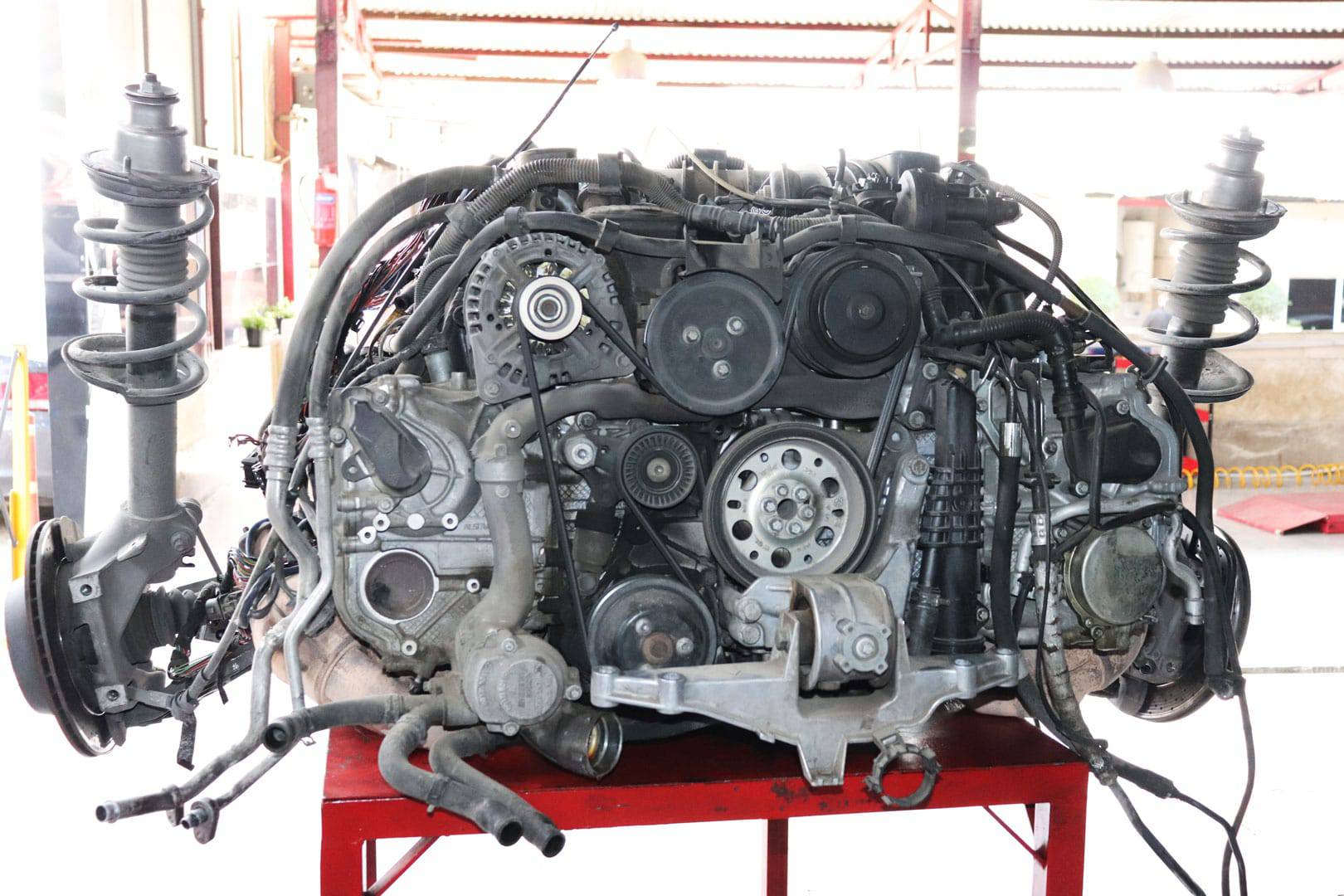 لازم به ذکر ه در یک پورشه ماکان مدل 2017 با کارکرد 51 هزار تا نیز این مشکلات را مشاهده کردیم حال اگر بخواهیم به صورت تفصیلی در مورد تعمیر گیربکس پورشه باکستر بحث کوتاهی کنیم تعمیر این گیربکس یکی از سخت ترین و در عین حال پیچیده ترین تعمیرات در ایران می باشد و اگر بخواهیم با عمل جراحی مقایسه اش کنیم مانند عمل پیوند قلب است چون برای تعمیر گیربکس این خودرو باید موتور و گیربکس این خودرو روی استند و نگه دارنده به صورت کامل پایین بیاید تا بتوانی به راحتی گیربکس را از موتور جدا کنی و بعد از تعمیر گیربکس به دلیل باز شدن لوله های اب و سیم کشی ها یک فرایند دو روزه کامل برای هواگیری خودرو با دستگاه های وارداتی از آلمان انجام دهیم و پروسه هواگیری این خودرو کار بسیار بسیار سختی می باشد .
