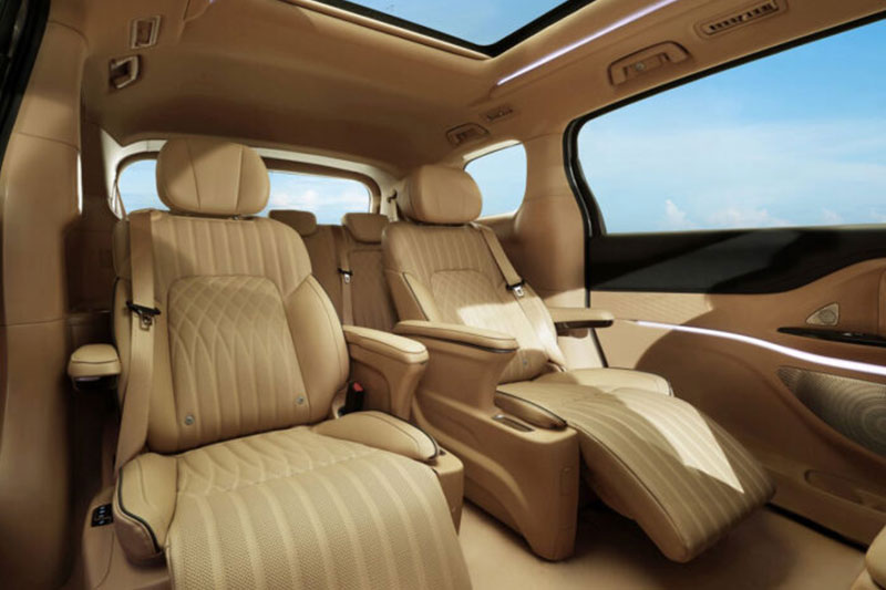 کابین این خودرو با صندلیهای برقی مجهز به گرمکن، تهویه و ماساژور، نورپردازی ۶۴ رنگ، سقف ستارهای و سیستم صوتی Dynaudio فضایی کاملاً لوکس و آرامشبخش ایجاد کرده و فضای بار آن بین ۴۲۷ تا ۲۶۸۰ لیتر قابل تنظیم است.